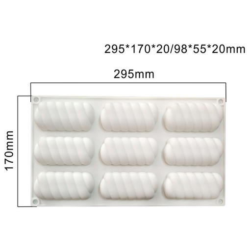 View full detailsCavity Size: 3.9" x 2.2" x 0.8" deep Mold Size: 11.7" x 6.7" 9 Cavities NY Cake offers a full line of silicone bakeware used by the casual baker a...